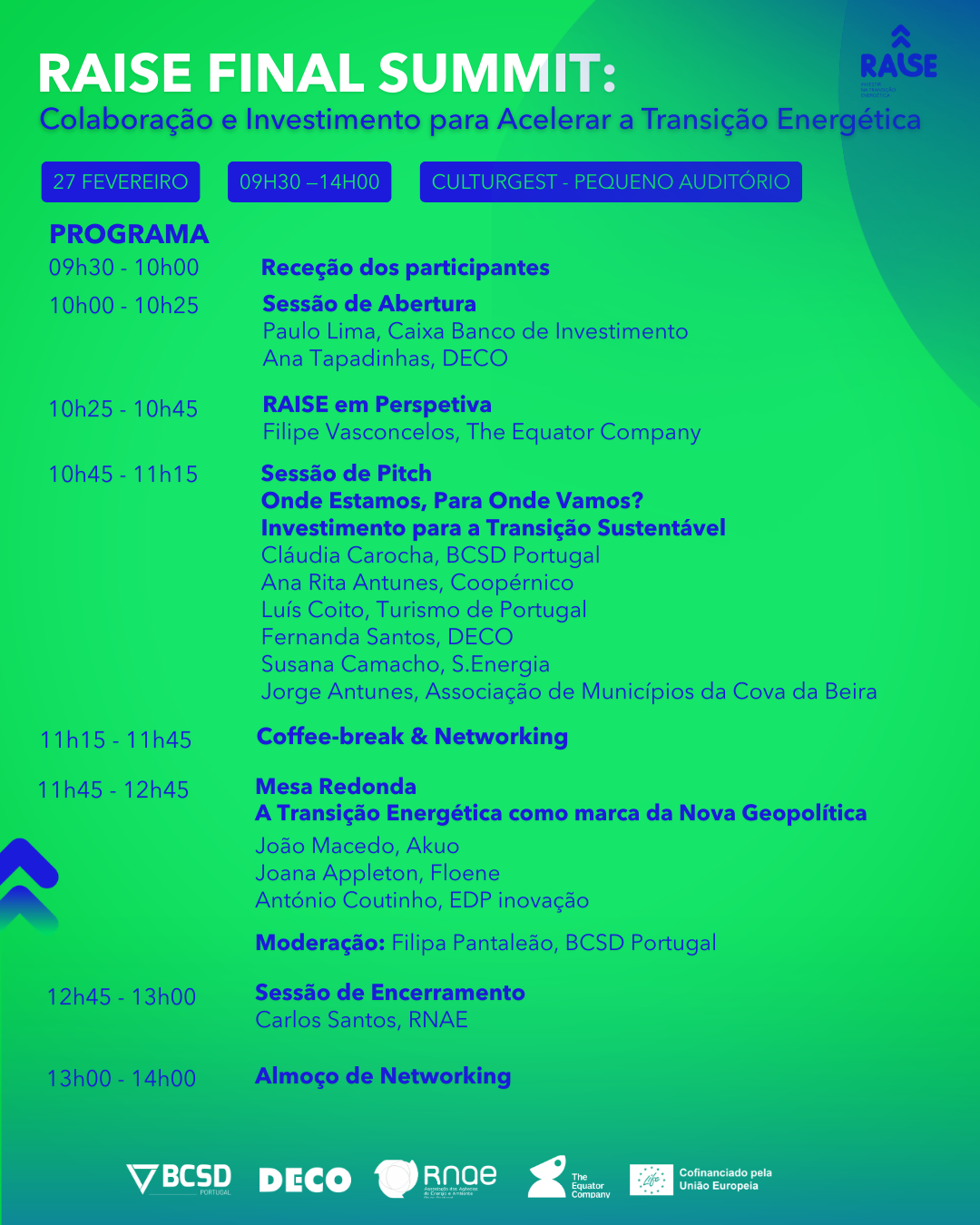 O RAISE Final Summit pretende afirmar-se como um espaço onde se reconhece o que já foi feito, se identificam com clareza os desafios que persistem e se reforça a vontade coletiva de continuar a trabalhar em conjunto para acelerar a transição energética em Portugal. Num contexto em que os desafios climáticos, económicos e sociais se tornam cada vez mais evidentes, a mensagem central é simples, mas exigente: só através da colaboração efetiva e do alinhamento entre políticas públicas, mercado e financiamento será possível transformar ambição em ação concreta e impacto duradouro.